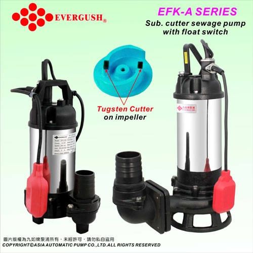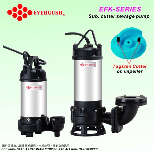 - Với thiết kế cánh cắt vượt trội nên bơm chìm nước thải EFK sử dụng được cho nước nước thải chứa các vật rắn như gậy, phân, đá sỏi nhỏ. v.v
